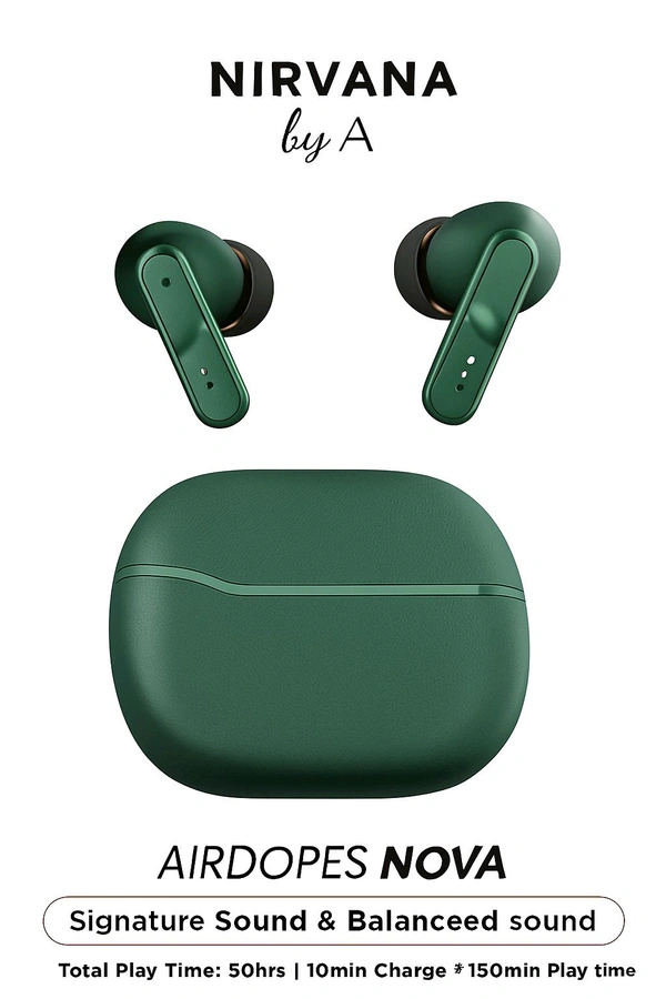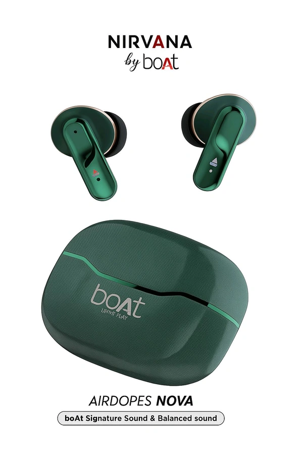 Experience next-level audio with the boAt Nirvana Airdopes NOVA. These premium TWS earbuds come with boAt Signature Sound and a balanced sound profile for crystal-clear vocals and deep bass. Designed for all-day comfort, they offer an impressive 50 hours of total playback and fast charging support. Whether it's music, calls, or gaming — these earbuds keep you in control with intuitive full-touch controls and a stylish, compact design.