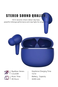 With the latest Bluetooth version 5.3, enjoy faster pairing, stable connectivity, and low-latency audio, making them perfect for music, video calls, gaming, and streaming. The 40-hour total playback time ensures non-stop music enjoyment, while the fast-charging case gets fully charged in just 1.5 hours, keeping you powered all day.