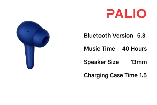 PALIO TWS Wireless Earbuds with 40H Playtime, Bluetooth 5.3, 13mm Dynamic Drivers, Fast Charging Case, Deep Bass, in-Ear Design, Compatible with Android & iOS (Blue)
