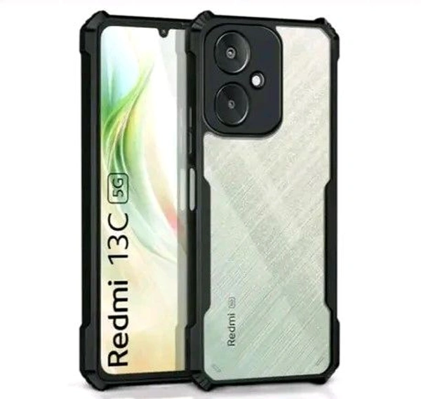 Color: Black Compatible Models: Redmi 13C 5G Material: ABS Plastic Net Quantity (N): 1 Theme: See-through Design Type: Plain Back Cover for Redmi 13C 5G / Redmi 13R | Shockproof | Transparent Back with Black Border High-Quality | Durable Design | Perfect Fit Product Name: Back Cover Case for Redmi 13C 5G / Redmi 13R Material: ABC Plastic Back + Soft TPU Bumper Color: Transparent Back with Professional Black Border Type: Back Cover Case Compatible Models: Redmi 13C 5G and Redmi 13R Product Features: ABC Plastic Material – Strong, lightweight, and impact-resistant clear back for long-lasting durability. Shockproof Corners – Bumper edges absorb shocks from accidental drops. Camera Protection – Slightly raised camera cutout for scratch resistance. Full Access Design – Precise cutouts for ports, speakers, camera, and buttons. Dual Compatibility – Designed to fit both Redmi 13C 5G and Redmi 13R perfectly. Grip-Friendly Edges – Matte-finish bumper ensures a secure and comfortable grip. Package Includes: 1 x Back Cover Case for Redmi 13C 5G / 13R Stylish, protective, and built with premium ABC plastic – Ideal for everyday use and complete phone safety.